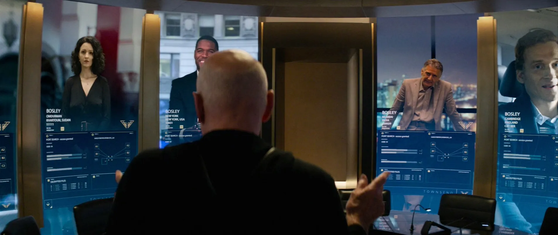 Actors: Kristen Stewart as Sabina Wilson, Naomi Scott as Elena Houghlin, Ella Balinska as Jane Kano, Elizabeth Banks as Bosley, Patrick Stewart as John Bosley, Djimon Hounsou as Bosley, Sam Claflin as Brok, Noah Centineo as Langston, Nat Faxon as Fleming, Chris Pang as Jonny Smith, Jonathan Tucker as Hodak, Luis Gerardo Méndez as The Saint, David Schütter as Ralph, Hannah Hoekstra as Ingrid (Angel), Jane Chirwa as Passing Woman (Angel), Emre Kentmenoğlu as Prince Alim Hassan, Murali Perumal as Pradeep Prasad, Sebastian Kroehnert as Sven Ludwig, Franz Xaver Zach as Watchmaker Schmidt, Andreas Schröders as The Accountant, Marie-Lou Sellem as Fatima Ahmed, Batur Belirdi as Bettor, Anna Drexler as Susan Olson, Tanem Çalbayram as Istanbul Ferry Girl, Michael Strahan as NY Bosley, Neil Malik Abdullah as LA Bosley, Nick Dong-Sik as LA Bosley, Dennenesch Zoudé as LA Bosley, Peter Sikorski as Brok Lobby Security, Frederic Böhle as Level 4 Guard, Eric Bouwer as Ralph Guard #1, Marco Grahl as Cyclist, Livia Matthes as Model, Tessa Achtermann as Dancer, Jabar Werner as Dancer, Daria Nowak as Dancer, Kiani Del Valle as Dancer, Jakob Yaw Yeboah as Dancer, Helen Aschauer as Dancer, Robert Clotworthy as Charlie (voice), Jaclyn Smith as Kelly Garrett, Danica Patrick as Driving Instructor, Ronda Rousey as Fight Instructor, Laverne Cox as Bomb Instructor, Hailee Steinfeld as Angel Recruit, Chloe Kim as Angel Recruit, Lili Reinhart as Angel Recruit, Aly Raisman as Angel Recruit, Huda Kattan as Angel Recruit, Robert Maaser as Big Man (uncredited), Nathalie Nailly as Partyguest (uncredited), Samantha Hunter Ogan as Charlie's Angels Recruit (uncredited), Danny Pardo as Old Man in Market (uncredited), Anouar H. Smaine as Istanbul Muezin (uncredited), Monique StaTeena as Gate Angel (uncredited)